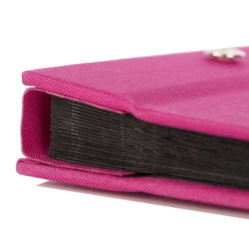 Schönes Universalalbum in der Farbe Rosa. Die Schraubbindung ermöglicht Ihnen das einfache Austauschen oder Erweitern der Albumseiten. Dadurch erreichen sie ein hohes Maß an Flexibilität. Der Leineneinband ist sehr hochwertig in Optik und Haptik. Die Ausstanzung für ein eigenes Bild im Frontcover schafft Ihnen mehr Individualität und damit machen Sie dieses Fotoalbum zu IHREM Fotoalbum.