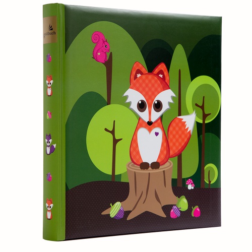 Ein schönes Kinderfotoalbum, perfekt für Jungs. Ein kleiner Fuchs sitzt auf einem Baumstumpf im Wald. Das Fotoalbum bietet Platz für bis zu 120 Fotos in 10x15. Die Pergaminseiten schützen Ihre Erinnerung. So haben Sie lange Freude daran.