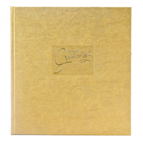 Wunderbares Goldhochzeitsfotoalbum aus gecrashten Stoff mit Goldprägung. 60 weiße Seiten bieten Ihnen genug Platz für die Schönsten Bilder Ihrer Goldhochzeit. Feine Pergaminseiten schützen Ihre Fotos vor dem Zusammenkleben. Das Fotoalbum ist auch perfekt geeignet als Gästebuch.